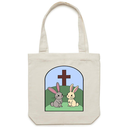 Easter Rabbit at the Cross Christian Canvas Tote Bag - Carrie