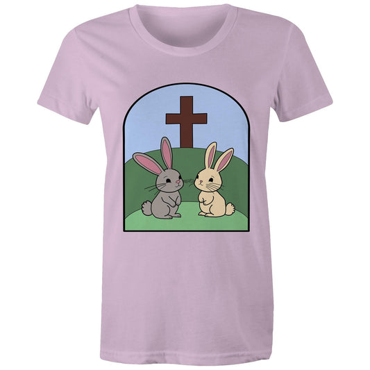 Easter Rabbits at the cross Christian Women's Tee