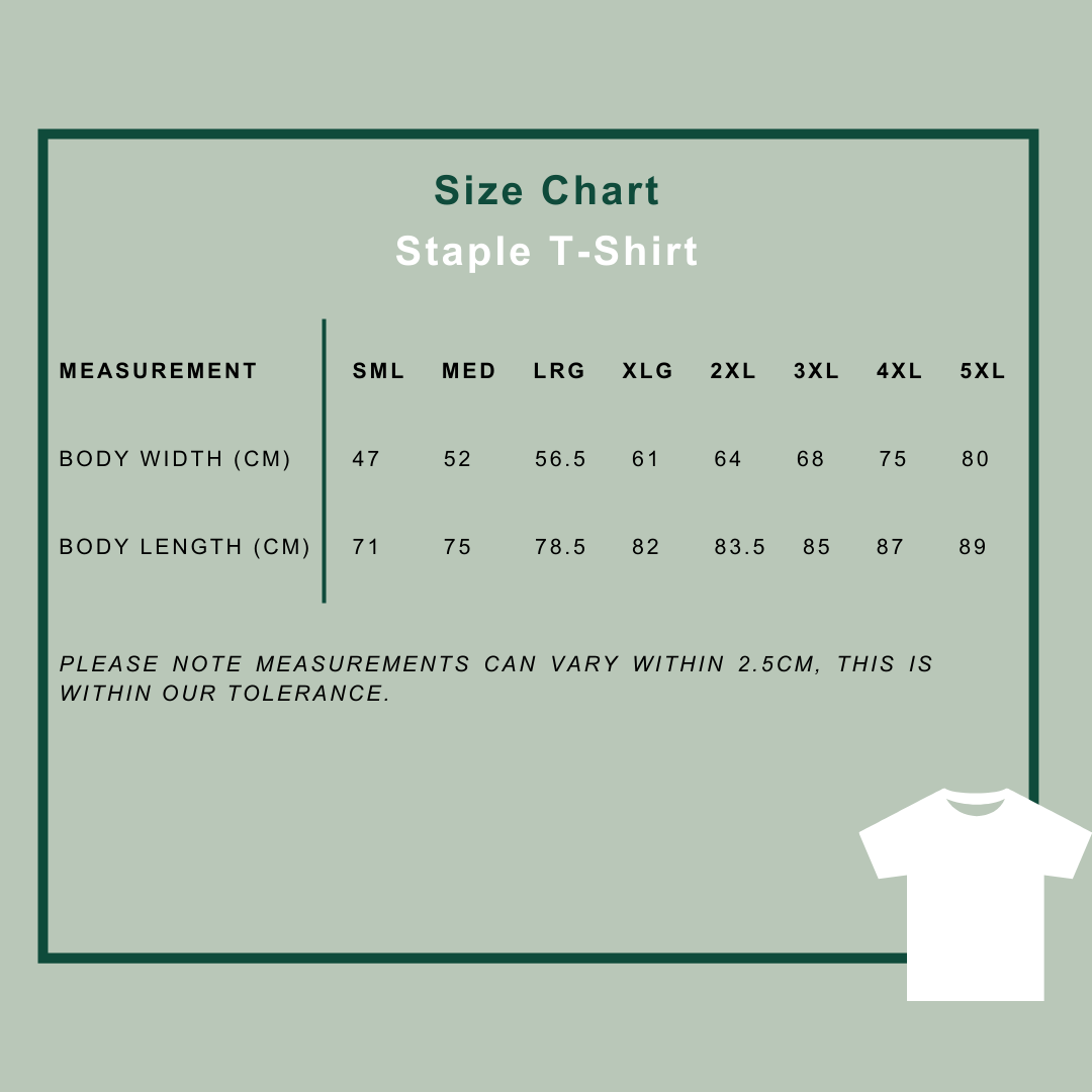 Our printing process takes this T-Shirt to the next level, as our designs are printed directly onto the fabric for a soft, breathable feel that lasts. The ink is absorbed by the fibers of the fabric, so there is no peeling or cracking over time. Using water-based, eco-friendly ink that is free of harmful chemicals, means it is both safe and sustainable. All this.... done in Australia!